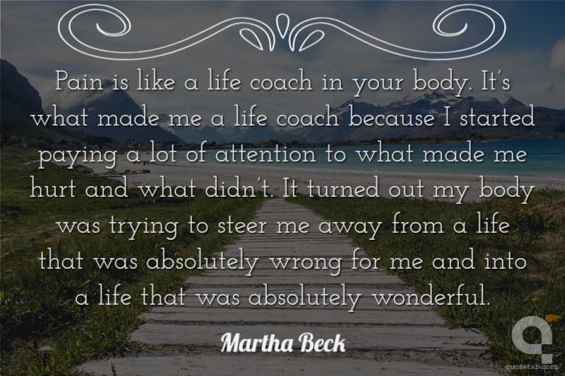 Pain is like a life coach in your body. It’s what made me a life coach because I started paying a lot of attention to what made me hurt and what didn’t. It turned out my body was trying to steer me away from a life that was absolutely wrong for me and into a life that was absolutely wonderful.