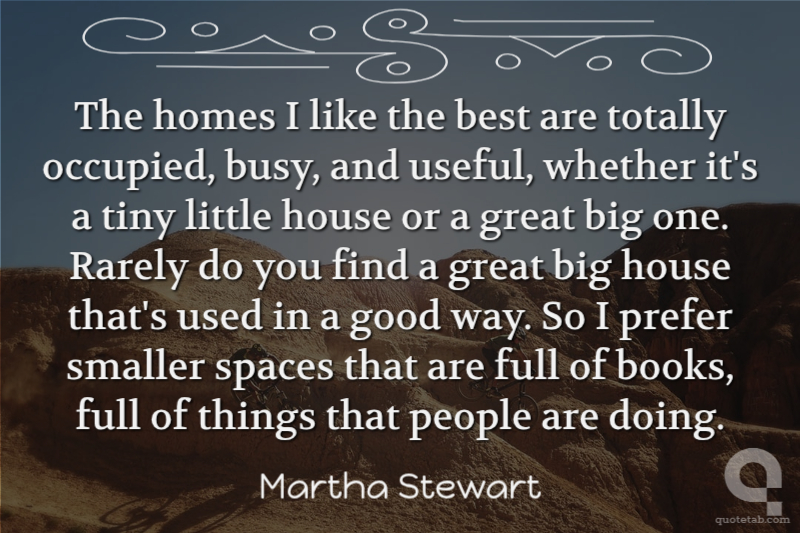 The homes I like the best are totally occupied, busy, and useful, whether it's a tiny little house or a great big one. Rarely do you find a great big house that's used in a good way. So I prefer smaller spaces that are full of books, full of things that people are doing.