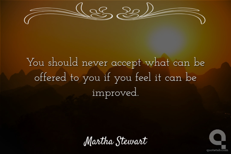 You should never accept what can be offered to you if you feel it can be improved.