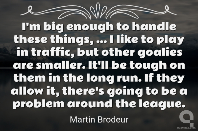 I'm big enough to handle these things, ... I like to play in traffic, but other goalies are smaller. It'll be tough on them in the long run. If they allow it, there's going to be a problem around the league.