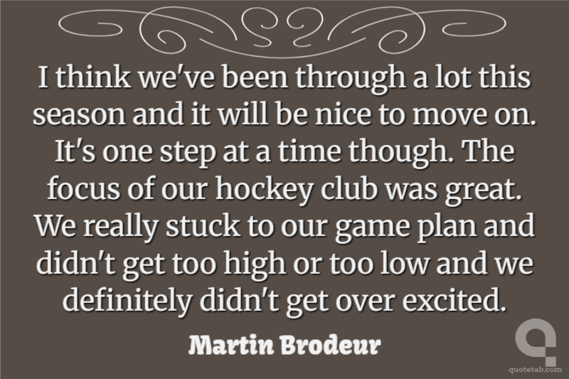 I think we've been through a lot this season and it will be nice to move on. It's one step at a time though. The focus of our hockey club was great. We really stuck to our game plan and didn't get too high or too low and we definitely didn't get over excited.