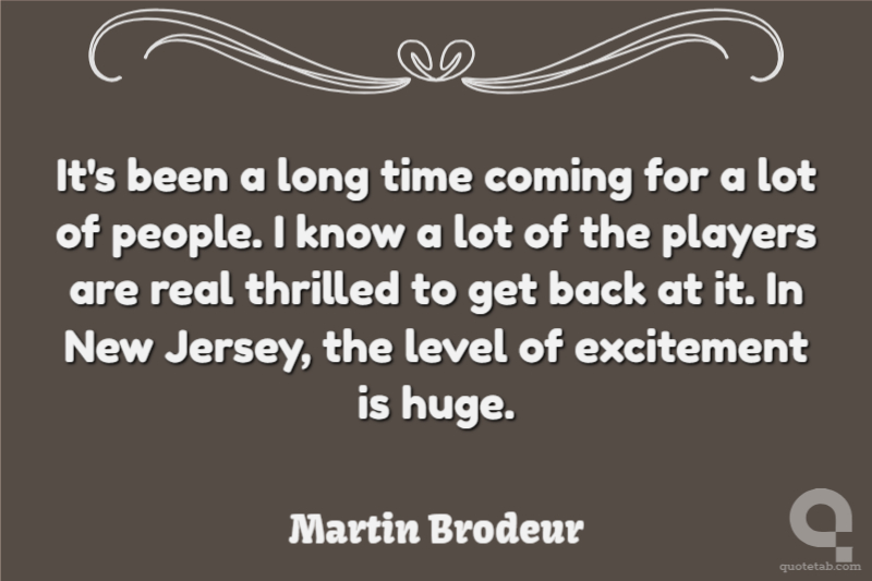 It's been a long time coming for a lot of people. I know a lot of the players are real thrilled to get back at it. In New Jersey, the level of excitement is huge.