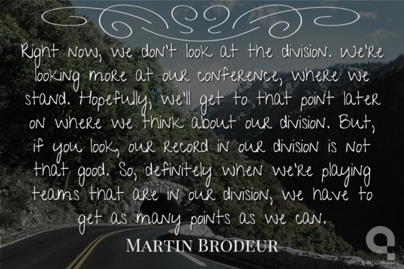 Right now, we don't look at the division. We're looking more at our conference, where we stand. Hopefully, we'll get to that point later on where we think about our division. But, if you look, our record in our division is not that good. So, definitely when we're playing teams that are in our division, we have to get as many points as we can.