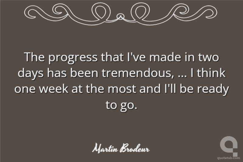 The progress that I've made in two days has been tremendous, ... I think one week at the most and I'll be ready to go.