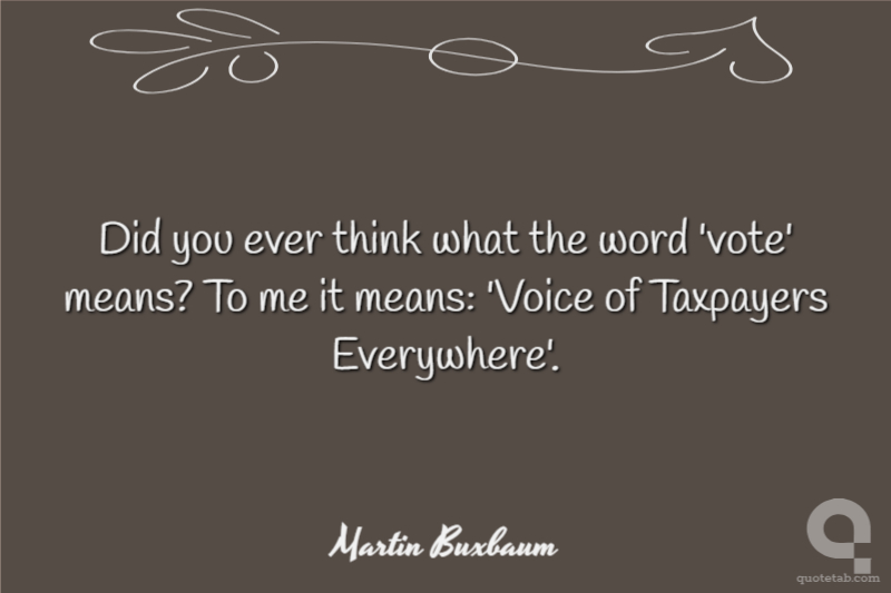 Did you ever think what the word 'vote' means? To me it means: 'Voice of Taxpayers Everywhere'.