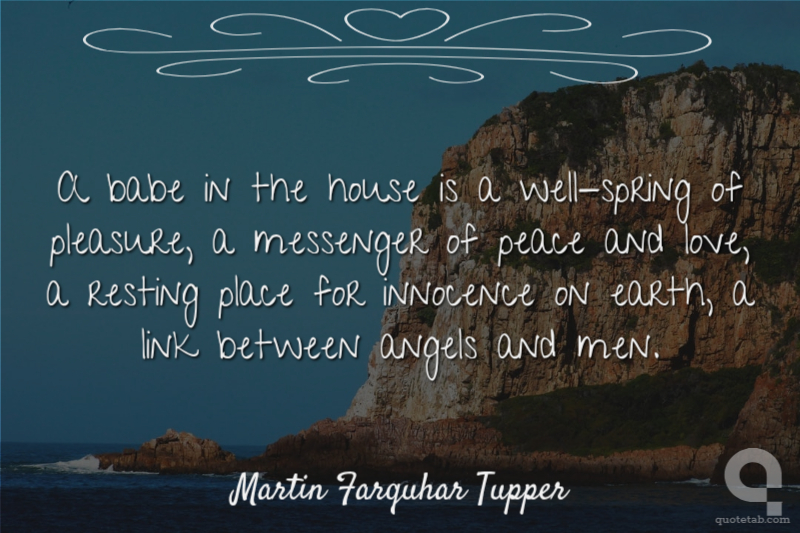 A babe in the house is a well-spring of pleasure, a messenger of peace and love, a resting place for innocence on earth, a link between angels and men.