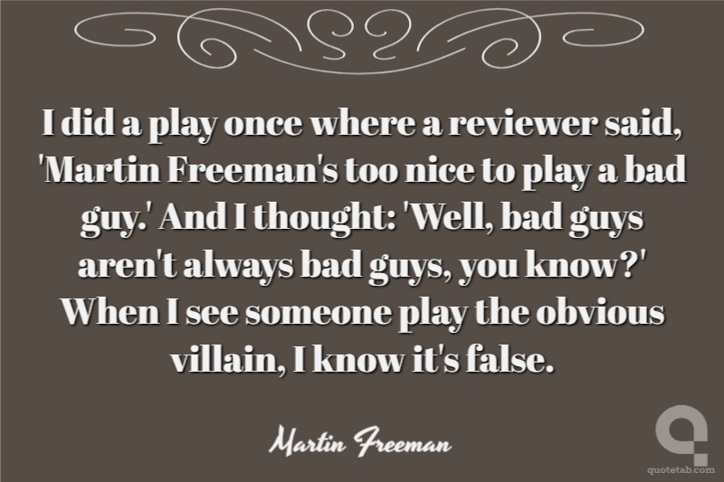 I did a play once where a reviewer said, 'Martin Freeman's too nice to play a bad guy.' And I thought: 'Well, bad guys aren't always bad guys, you know?' When I see someone play the obvious villain, I know it's false.