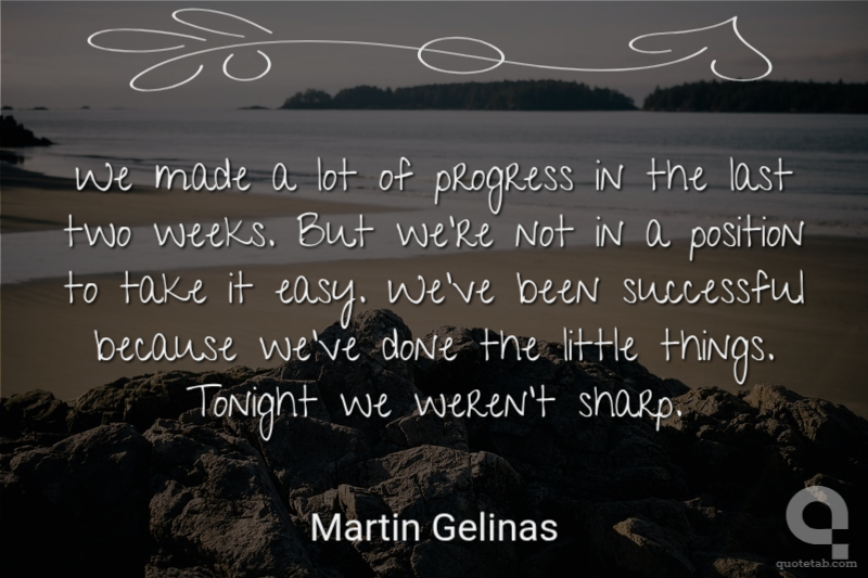 We made a lot of progress in the last two weeks. But we're not in a position to take it easy. We've been successful because we've done the little things. Tonight we weren't sharp.