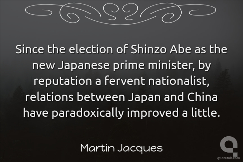 Since the election of Shinzo Abe as the new Japanese prime minister, by reputation a fervent nationalist, relations between Japan and China have paradoxically improved a little.
