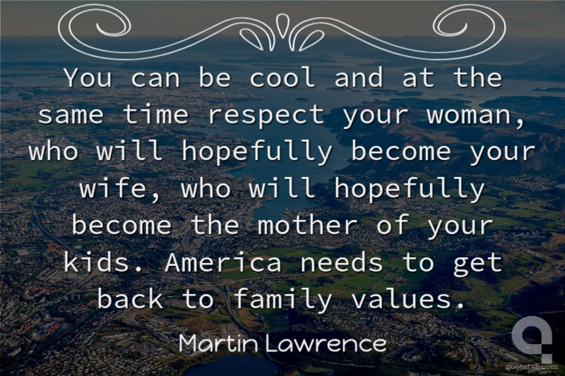 You can be cool and at the same time respect your woman, who will hopefully become your wife, who will hopefully become the mother of your kids. America needs to get back to family values.