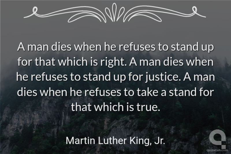 A man dies when he refuses to stand up for that which is right. A man dies when he refuses to stand up for justice. A man dies when he refuses to take a stand for that which is true.