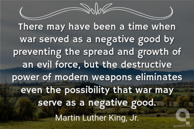 There may have been a time when war served as a negative good by preventing the spread and growth of an evil force, but the destructive power of modern weapons eliminates even the possibility that war may serve as a negative good.
