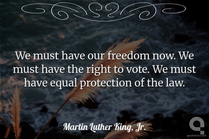 We must have our freedom now. We must have the right to vote. We must have equal protection of the law.