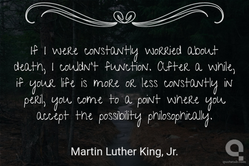 If I were constantly worried about death, I couldn't function. After a while, if your life is more or less constantly in peril, you come to a point where you accept the possibility philosophically.