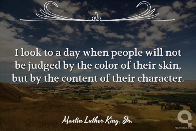 I look to a day when people will not be judged by the color of their skin, but by the content of their character.