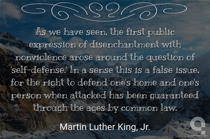 As we have seen, the first public expression of disenchantment with nonviolence arose around the question of 'self-defense.' In a sense this is a false issue, for the right to defend one's home and one's person when attacked has been guaranteed through the ages by common law.