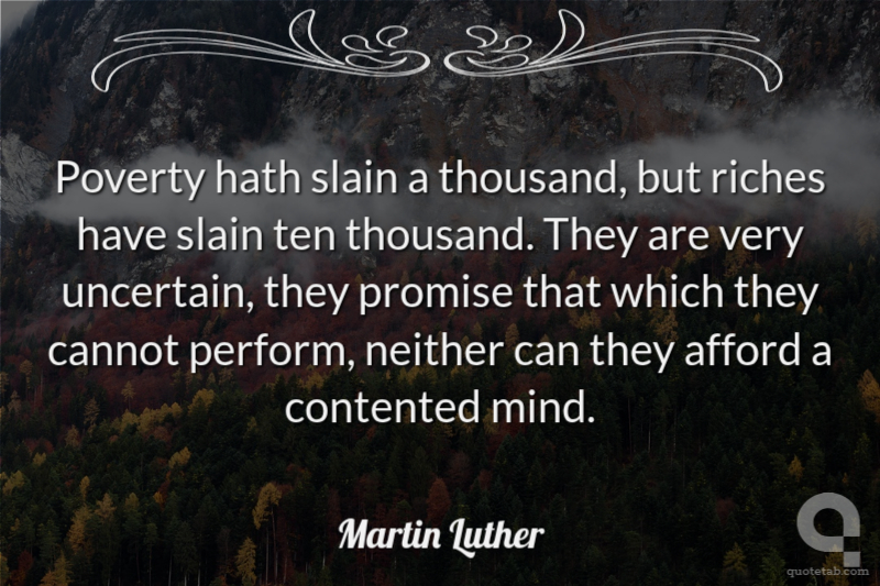 Poverty hath slain a thousand, but riches have slain ten thousand. They are very uncertain, they promise that which they cannot perform, neither can they afford a contented mind.