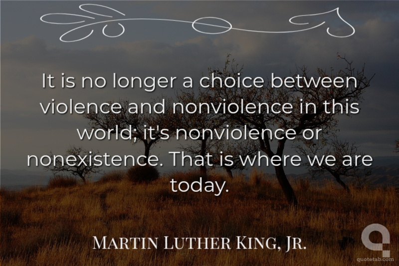 It is no longer a choice between violence and nonviolence in this world; it's nonviolence or nonexistence. That is where we are today.