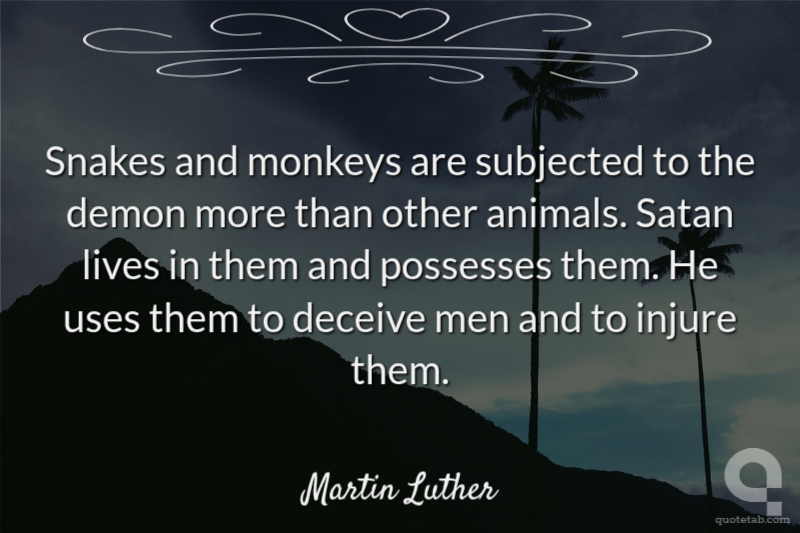 Snakes and monkeys are subjected to the demon more than other animals. Satan lives in them and possesses them. He uses them to deceive men and to injure them.