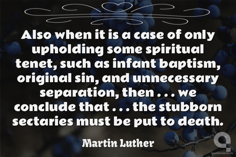 Also when it is a case of only upholding some spiritual tenet, such as infant baptism, original sin, and unnecessary separation, then . . . we conclude that . . . the stubborn sectaries must be put to death.