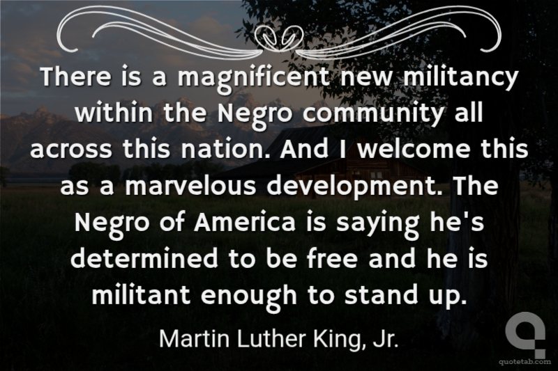 There is a magnificent new militancy within the Negro community all across this nation. And I welcome this as a marvelous development. The Negro of America is saying he's determined to be free and he is militant enough to stand up.