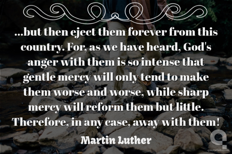 ...but then eject them forever from this country. For, as we have heard, God's anger with them is so intense that gentle mercy will only tend to make them worse and worse, while sharp mercy will reform them but little. Therefore, in any case, away with them!