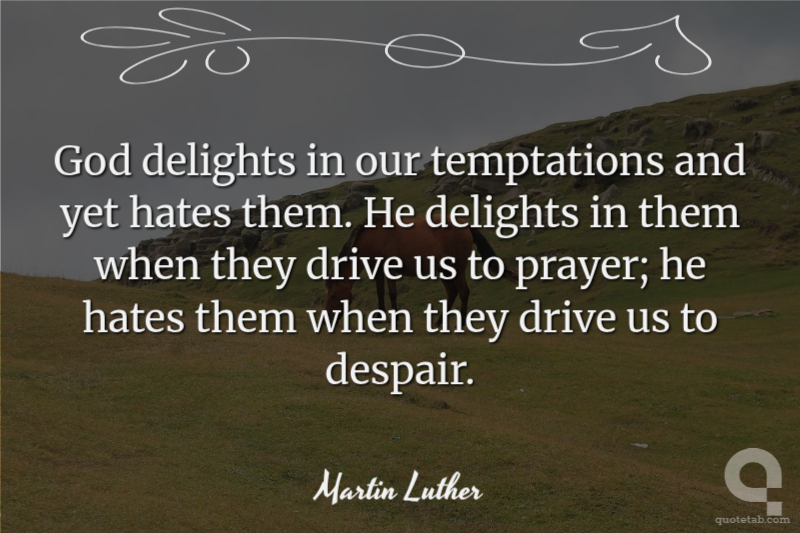God delights in our temptations and yet hates them. He delights in them when they drive us to prayer; he hates them when they drive us to despair.