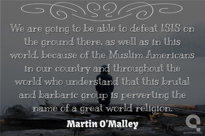 We are going to be able to defeat ISIS on the ground there, as well as in this world, because of the Muslim Americans in our country and throughout the world who understand that this brutal and barbaric group is perverting the name of a great world religion.