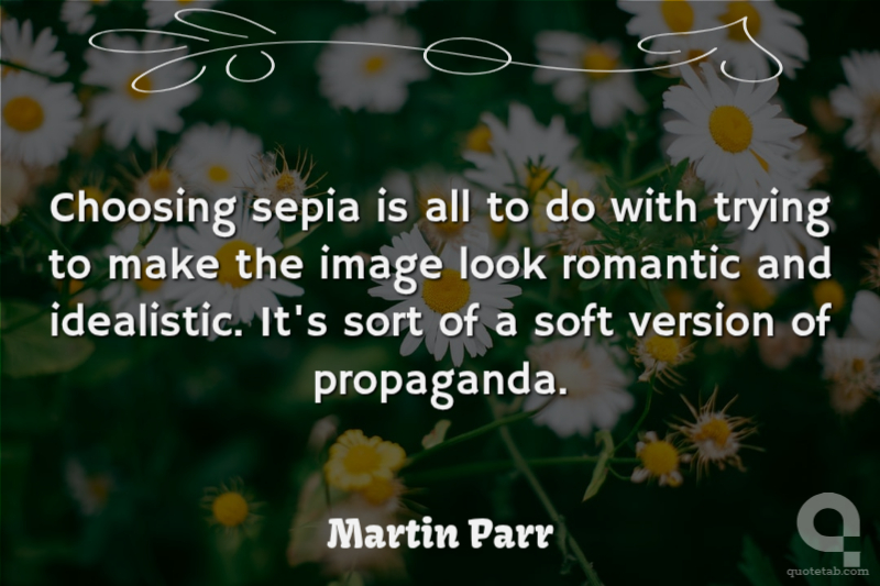 Choosing sepia is all to do with trying to make the image look romantic and idealistic. It's sort of a soft version of propaganda.