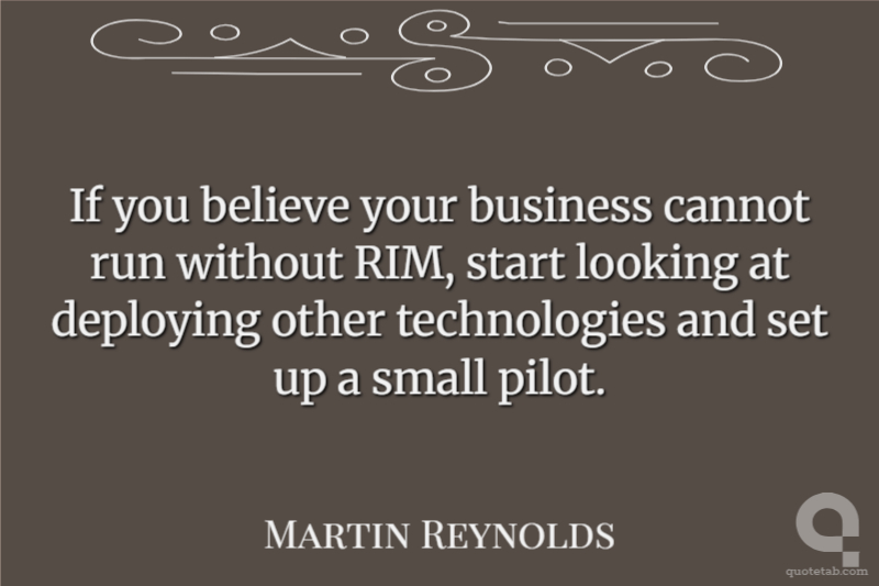 If you believe your business cannot run without RIM, start looking at deploying other technologies and set up a small pilot.