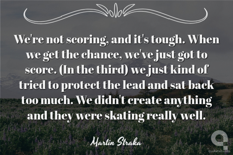 We're not scoring, and it's tough. When we get the chance, we've just got to score. (In the third) we just kind of tried to protect the lead and sat back too much. We didn't create anything and they were skating really well.