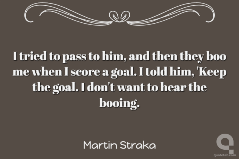 I tried to pass to him, and then they boo me when I score a goal. I told him, 'Keep the goal. I don't want to hear the booing.