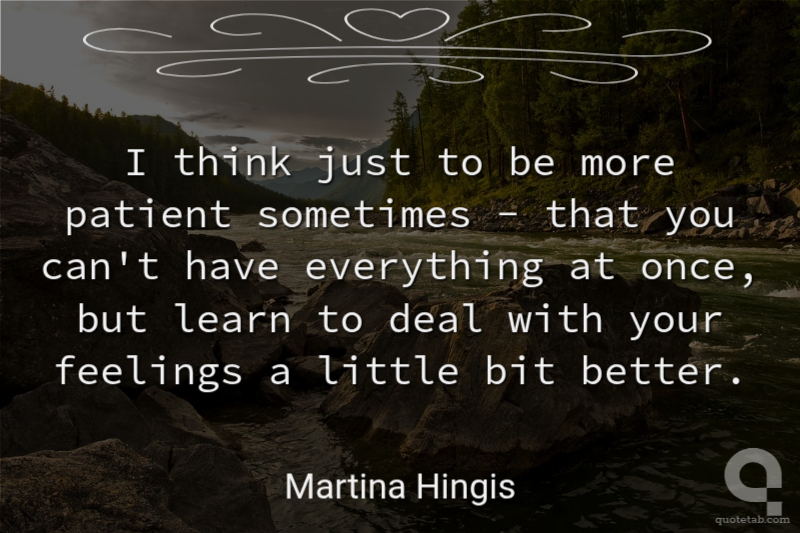I think just to be more patient sometimes - that you can't have everything at once, but learn to deal with your feelings a little bit better.