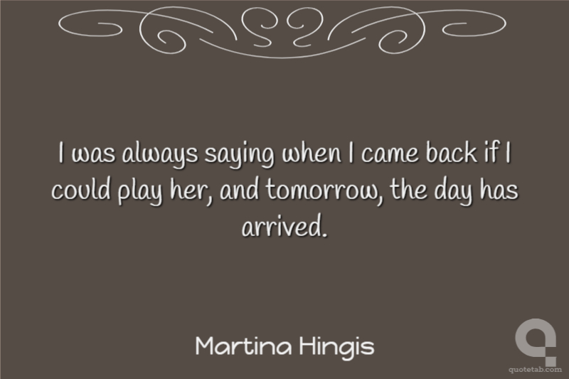 I was always saying when I came back if I could play her, and tomorrow, the day has arrived.