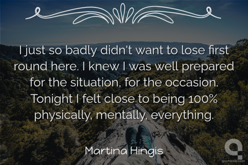 I just so badly didn't want to lose first round here. I knew I was well prepared for the situation, for the occasion. Tonight I felt close to being 100% physically, mentally, everything.