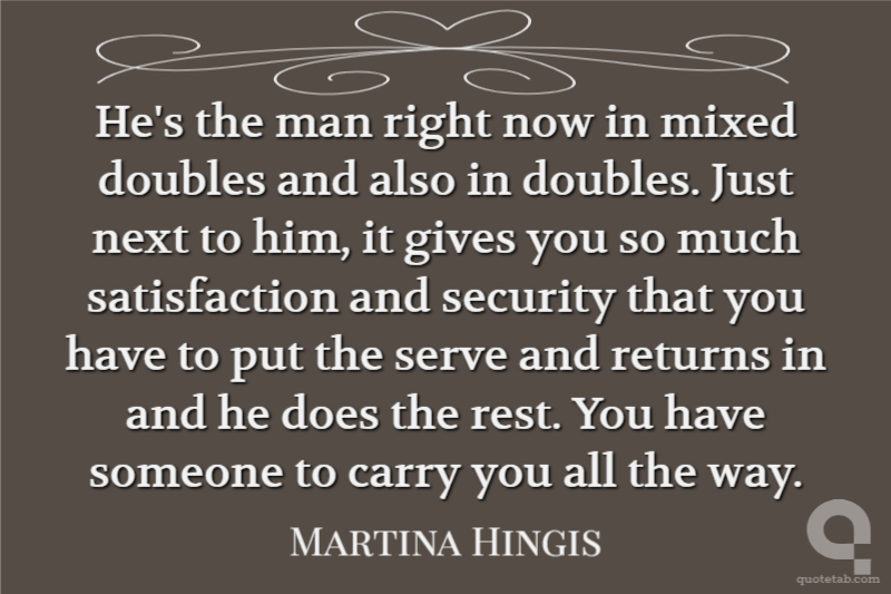 He's the man right now in mixed doubles and also in doubles. Just next to him, it gives you so much satisfaction and security that you have to put the serve and returns in and he does the rest. You have someone to carry you all the way.