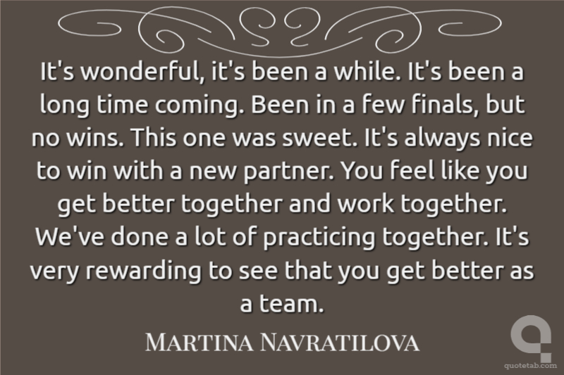 It's wonderful, it's been a while. It's been a long time coming. Been in a few finals, but no wins. This one was sweet. It's always nice to win with a new partner. You feel like you get better together and work together. We've done a lot of practicing together. It's very rewarding to see that you get better as a team.