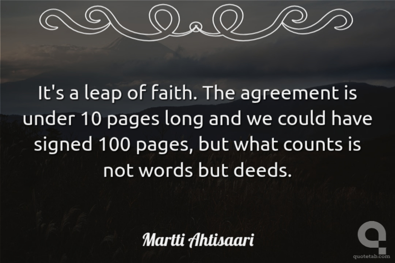 It's a leap of faith. The agreement is under 10 pages long and we could have signed 100 pages, but what counts is not words but deeds.