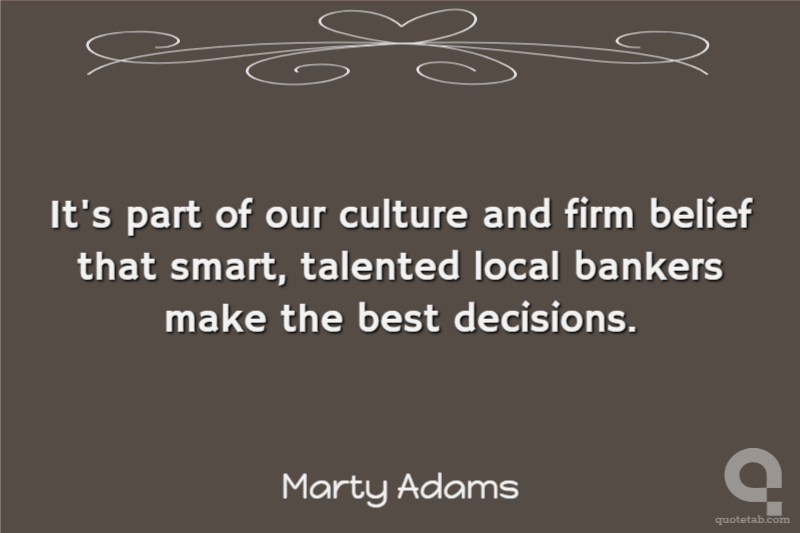 It's part of our culture and firm belief that smart, talented local bankers make the best decisions.