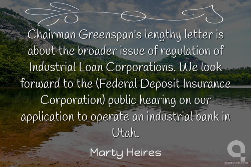 Chairman Greenspan's lengthy letter is about the broader issue of regulation of Industrial Loan Corporations. We look forward to the (Federal Deposit Insurance Corporation) public hearing on our application to operate an industrial bank in Utah.