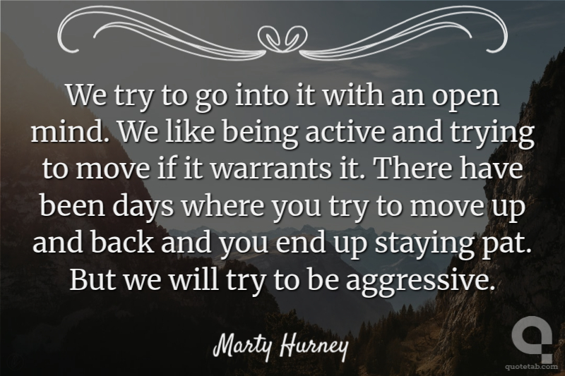 We try to go into it with an open mind. We like being active and trying to move if it warrants it. There have been days where you try to move up and back and you end up staying pat. But we will try to be aggressive.