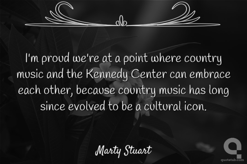 I'm proud we're at a point where country music and the Kennedy Center can embrace each other, because country music has long since evolved to be a cultural icon.