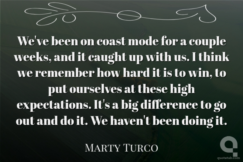 We've been on coast mode for a couple weeks, and it caught up with us. I think we remember how hard it is to win, to put ourselves at these high expectations. It's a big difference to go out and do it. We haven't been doing it.
