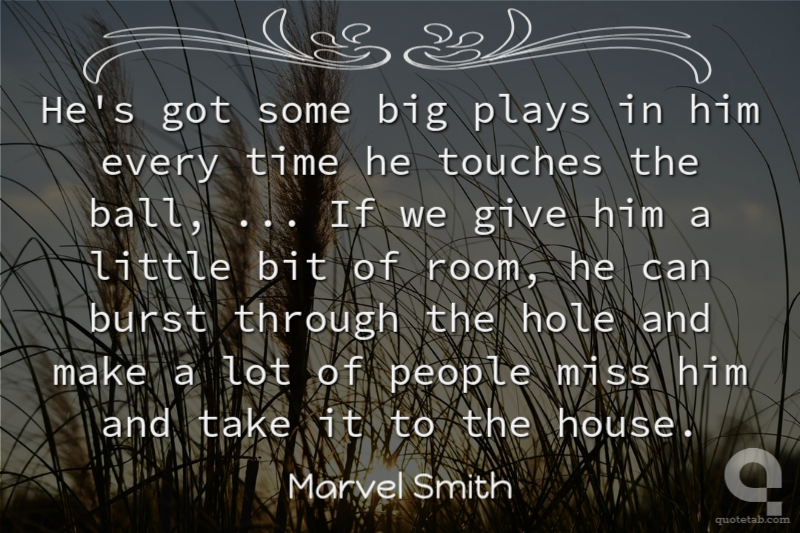 He's got some big plays in him every time he touches the ball, ... If we give him a little bit of room, he can burst through the hole and make a lot of people miss him and take it to the house.