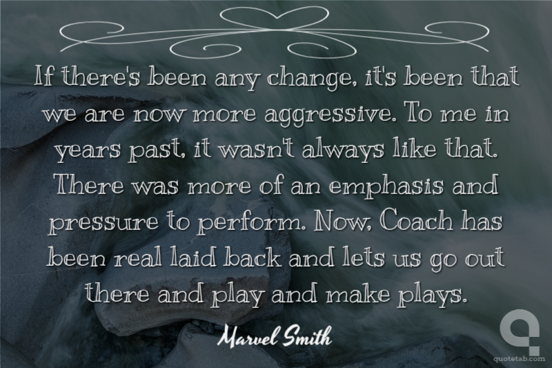 If there's been any change, it's been that we are now more aggressive. To me in years past, it wasn't always like that. There was more of an emphasis and pressure to perform. Now, Coach has been real laid back and lets us go out there and play and make plays.