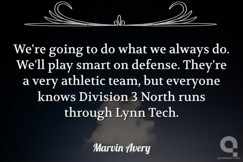We're going to do what we always do. We'll play smart on defense. They're a very athletic team, but everyone knows Division 3 North runs through Lynn Tech.