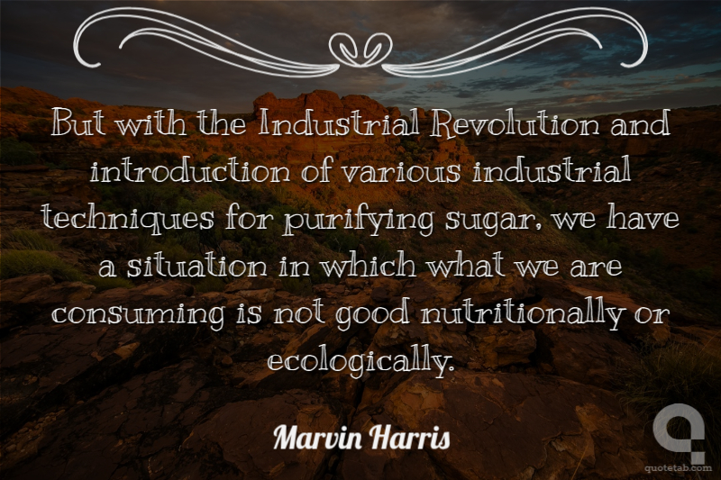 But with the Industrial Revolution and introduction of various industrial techniques for purifying sugar, we have a situation in which what we are consuming is not good nutritionally or ecologically.