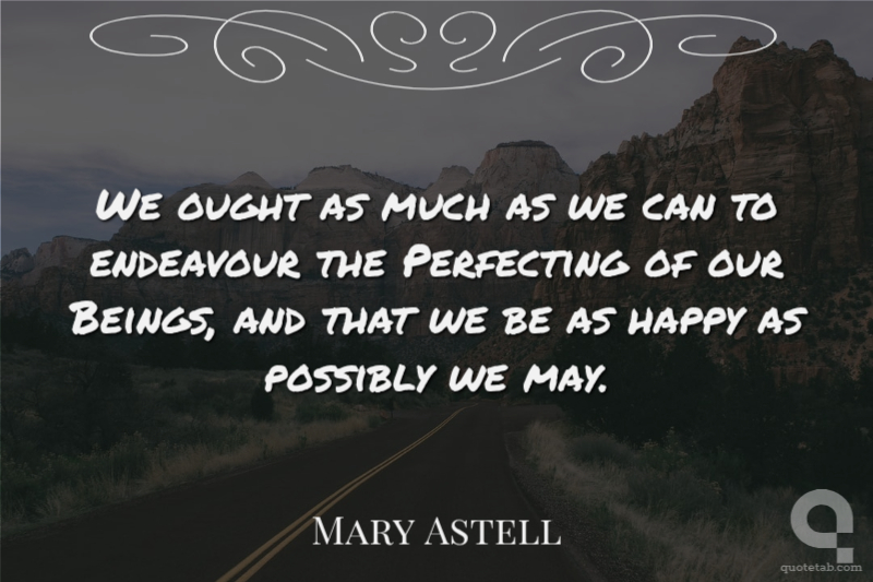 We ought as much as we can to endeavour the Perfecting of our Beings, and that we be as happy as possibly we may.