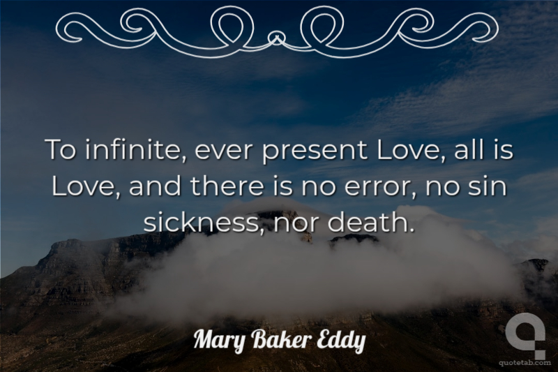 To infinite, ever present Love, all is Love, and there is no error, no sin sickness, nor death.