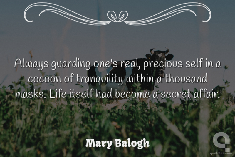 Always guarding one's real, precious self in a cocoon of tranquility within a thousand masks. Life itself had become a secret affair.